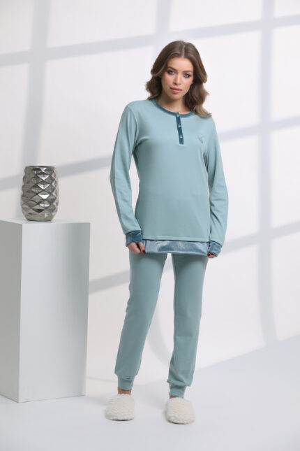 “Made in Italy” Cotton Fleece Fully Buttoned Pajama