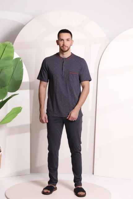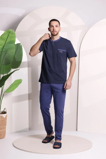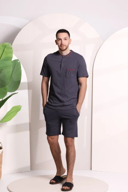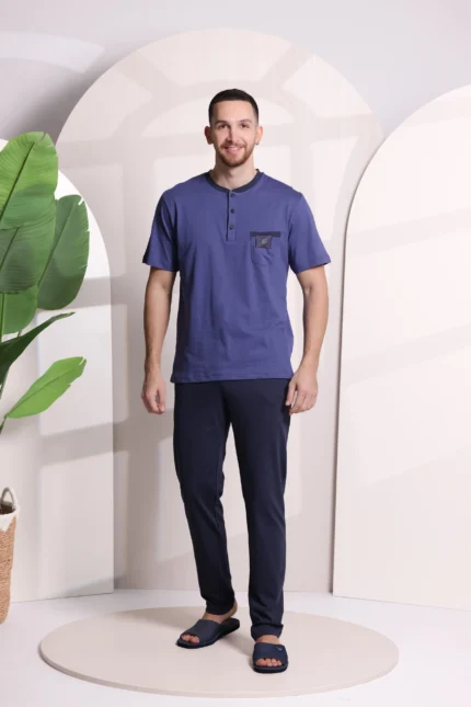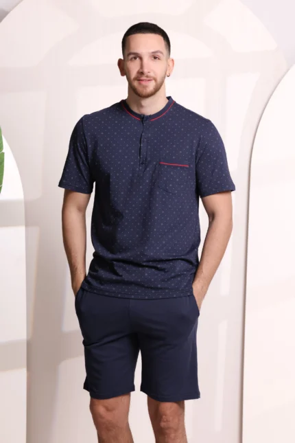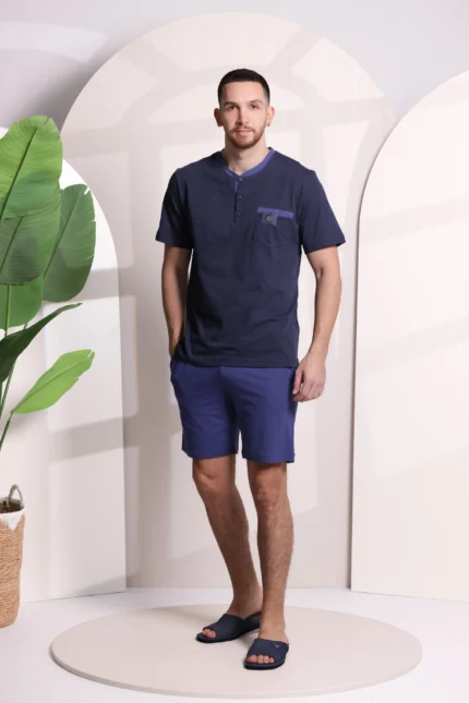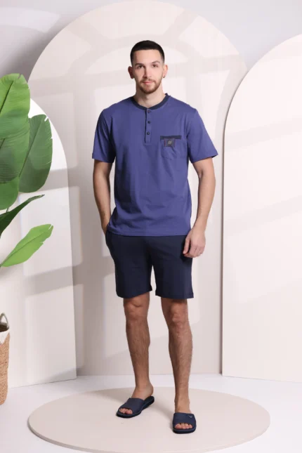 “Made in Italy” Big Sizes 3 Pieces Men Pajama : 100% Cotton Top + Shorts + Pants with 3 Buttons…