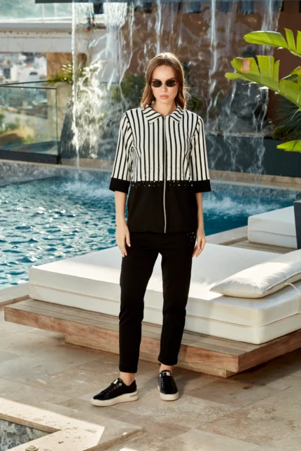 2 Pieces Casual Pants Set with Zipper Opening