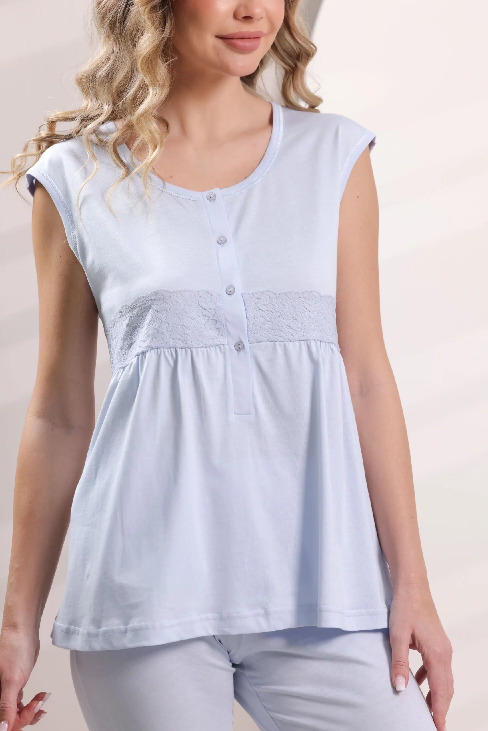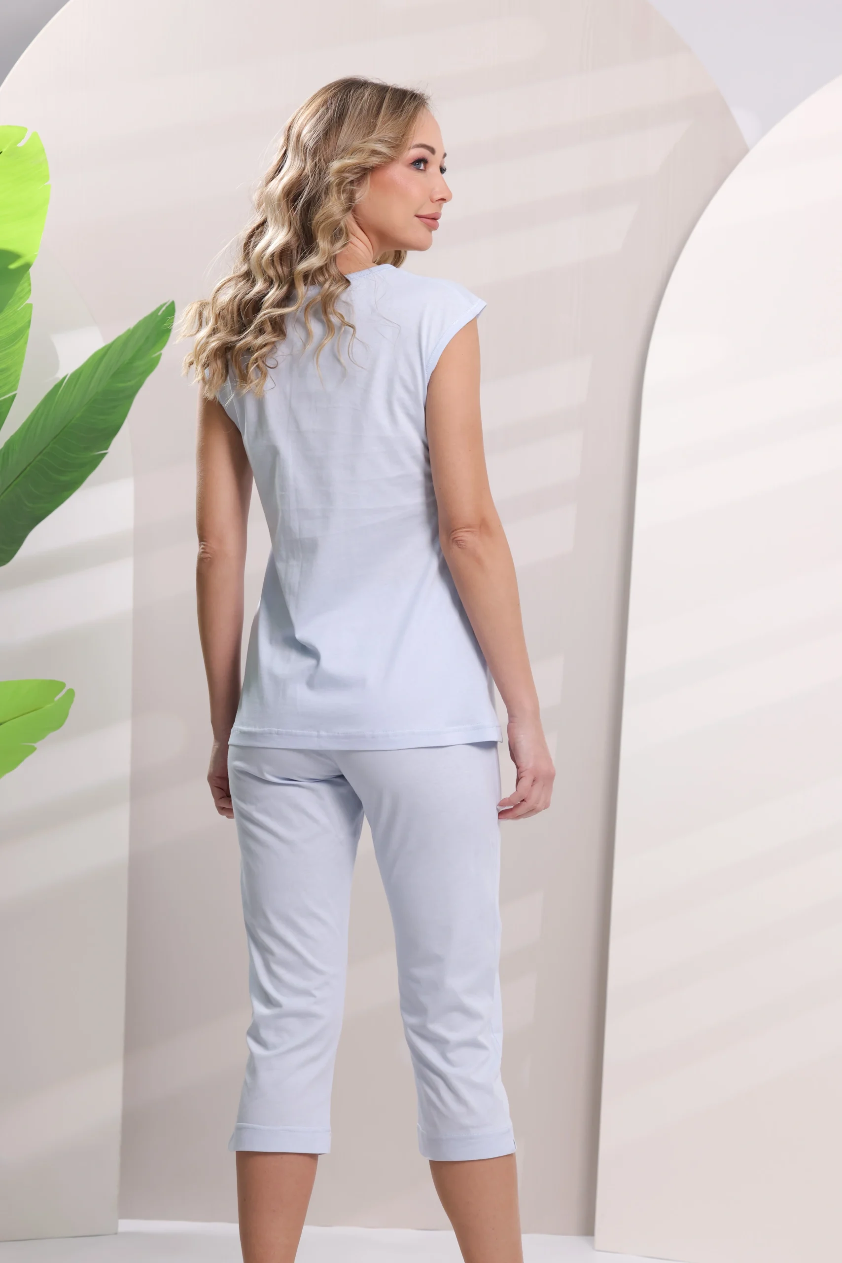 “Made in Italy” Big Sizes Sleeveless Cotton Capri Pajama Pants