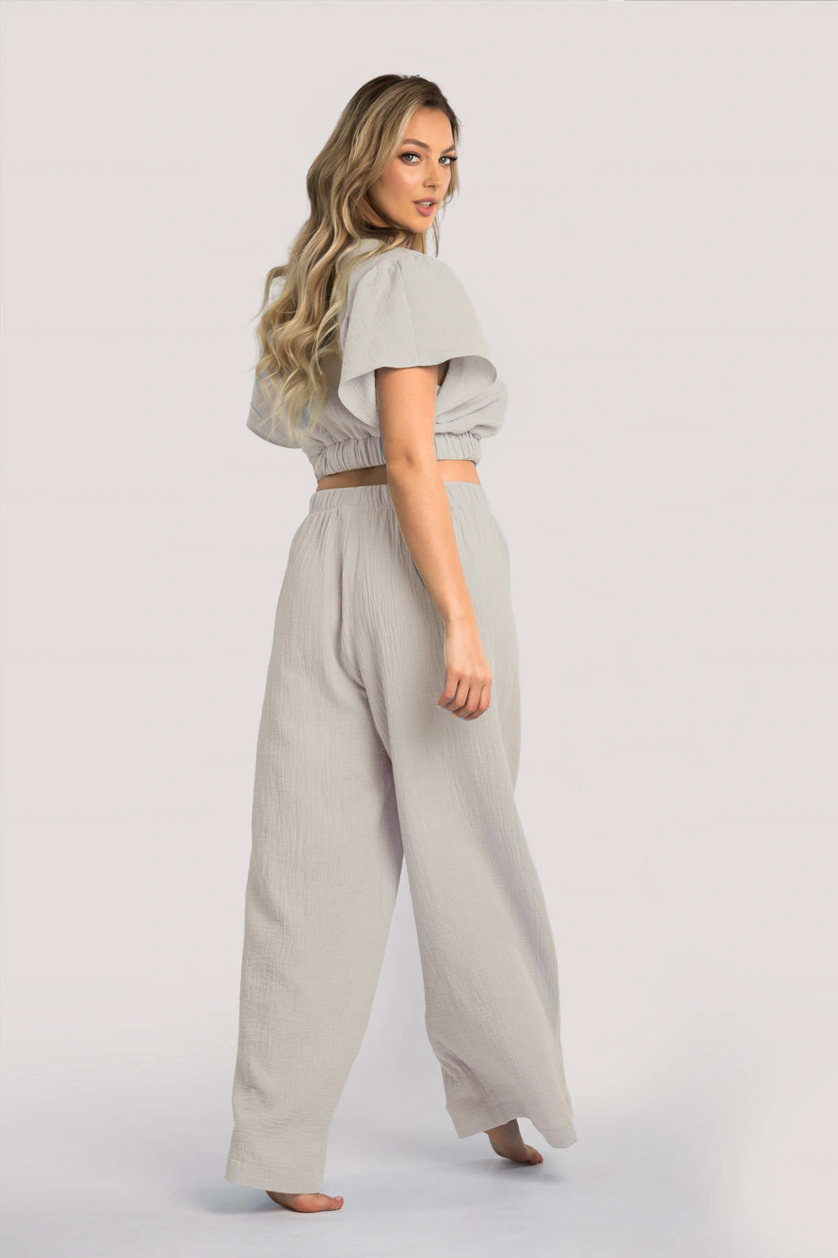 Big Size 2 Pieces Casual Pants Set with Zipper Opening